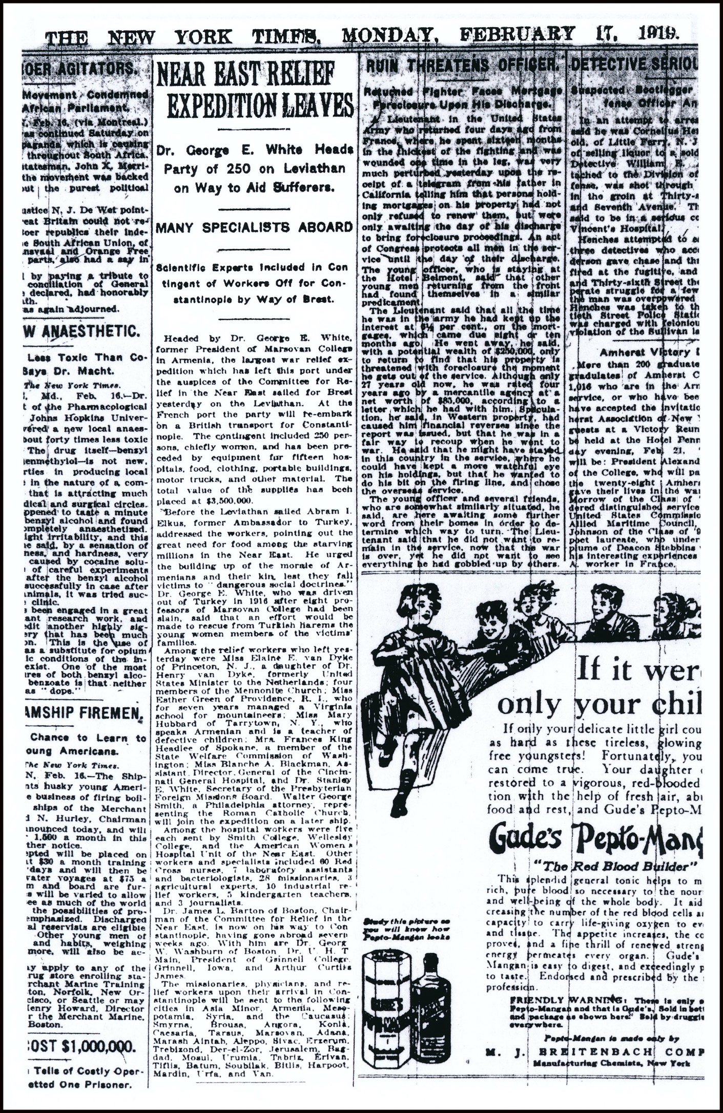 Times February 17, 1919 pg. 6 we read that Ҏear East Expedition Leaves.Ӡ A reproduction of the full notice follows.