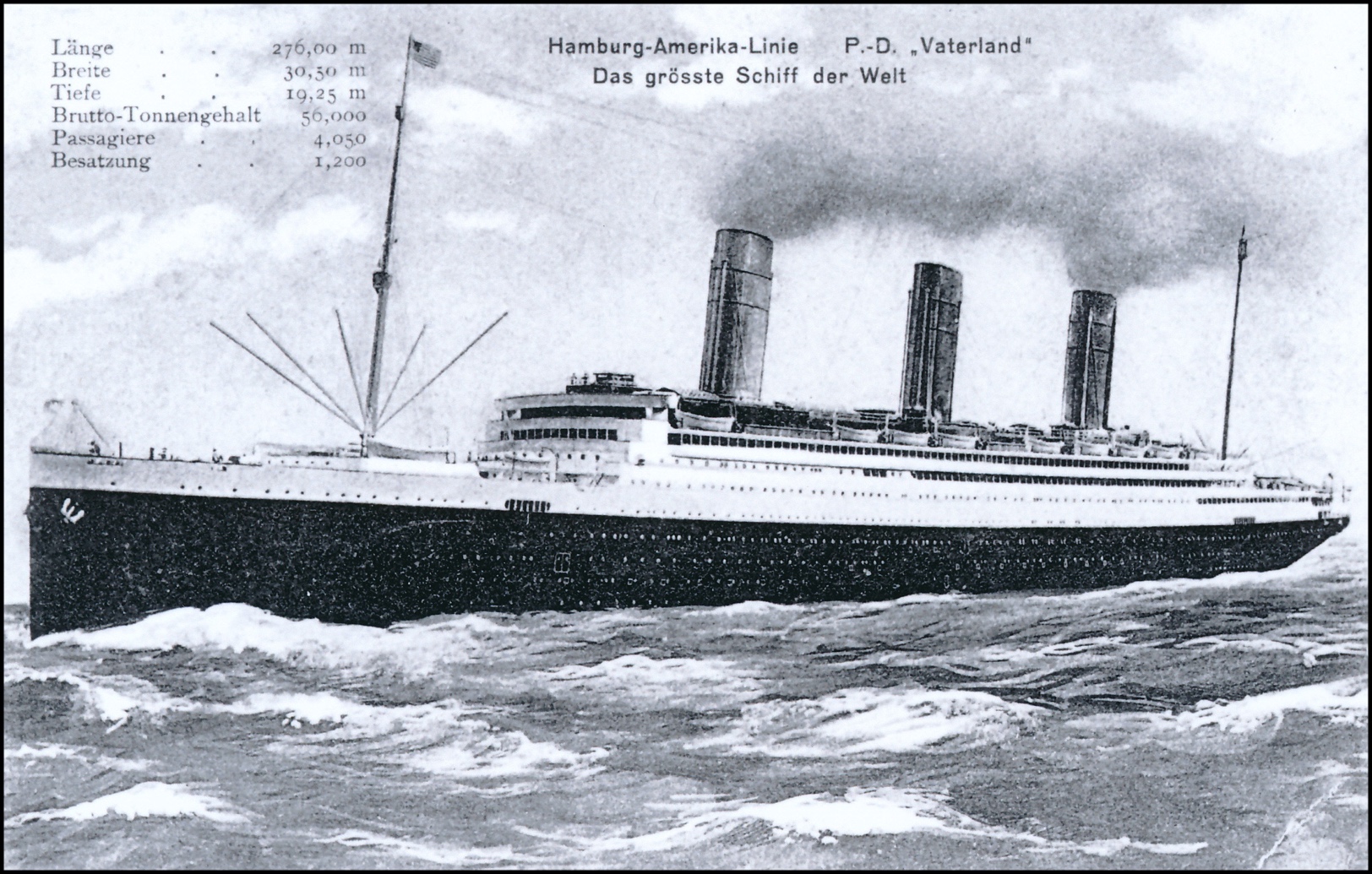 formerly the S.S. Vaterland, a Hamburg-American (German) liner. It was the largest ship on the seas (tonnage
